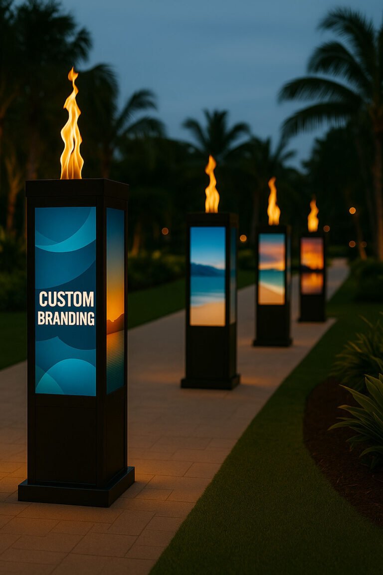 The LED Display Torches can be customized with branded video and graphic content developed in collaboration with FIRE Inc.. Our team works directly with venues and operators to design visuals that reflect each brand identity, sponsor, or event theme. These custom graphics and motion designs are then integrated into the FIRE System and managed through the FIRE App for effortless playback and control.